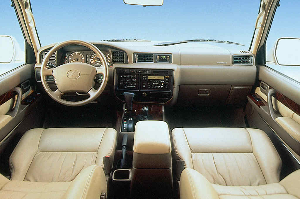 Салон був схожий на той, який пропонувався на Land Cruiser J80, але сидіння стали шкіряними, матеріали більш якісними та в інших кольорах, з’явилися дерев’яні декоративні вставки. Також покращили шумоізоляцію. Як і його побратим, LX був семимісним – з двома відкидними сидіннями в багажнику.